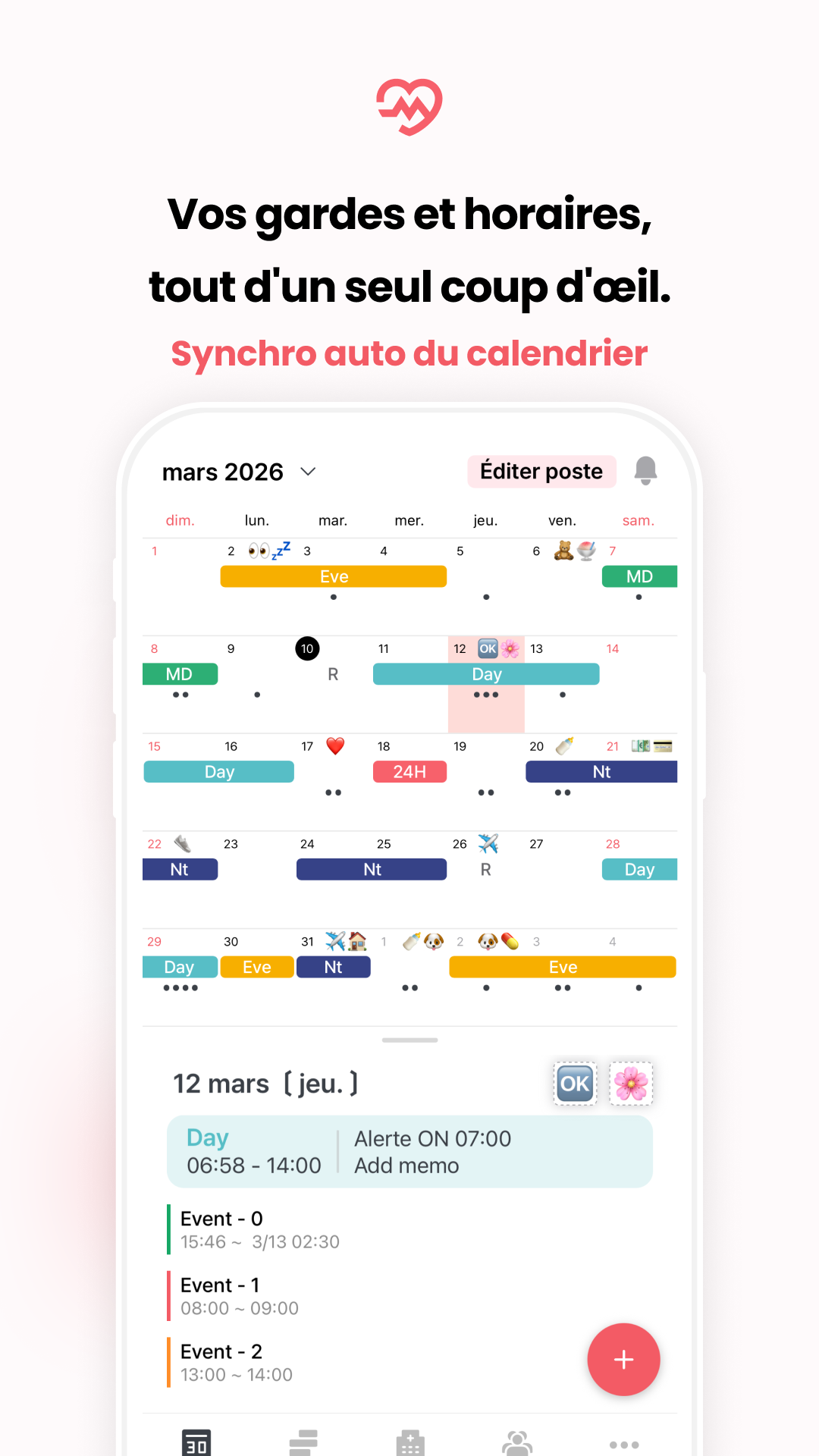 Consultez shifts et événements personnels sur un