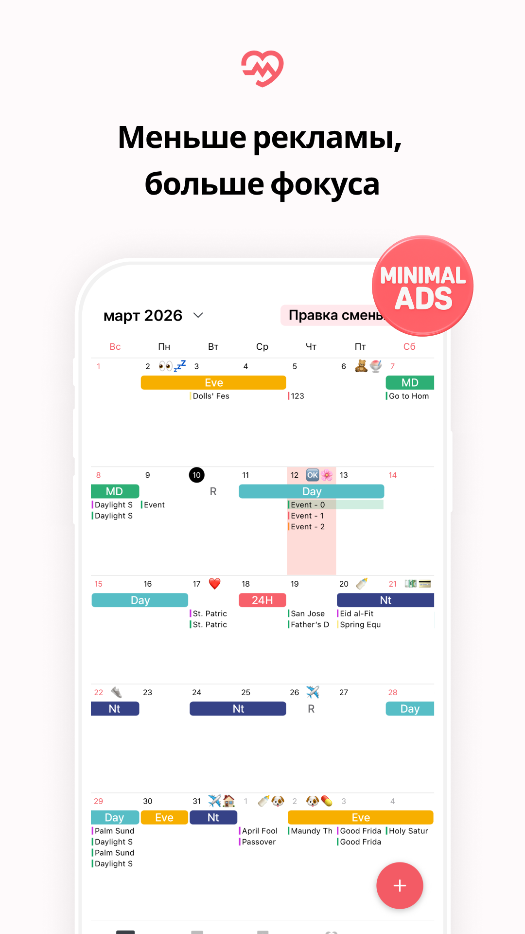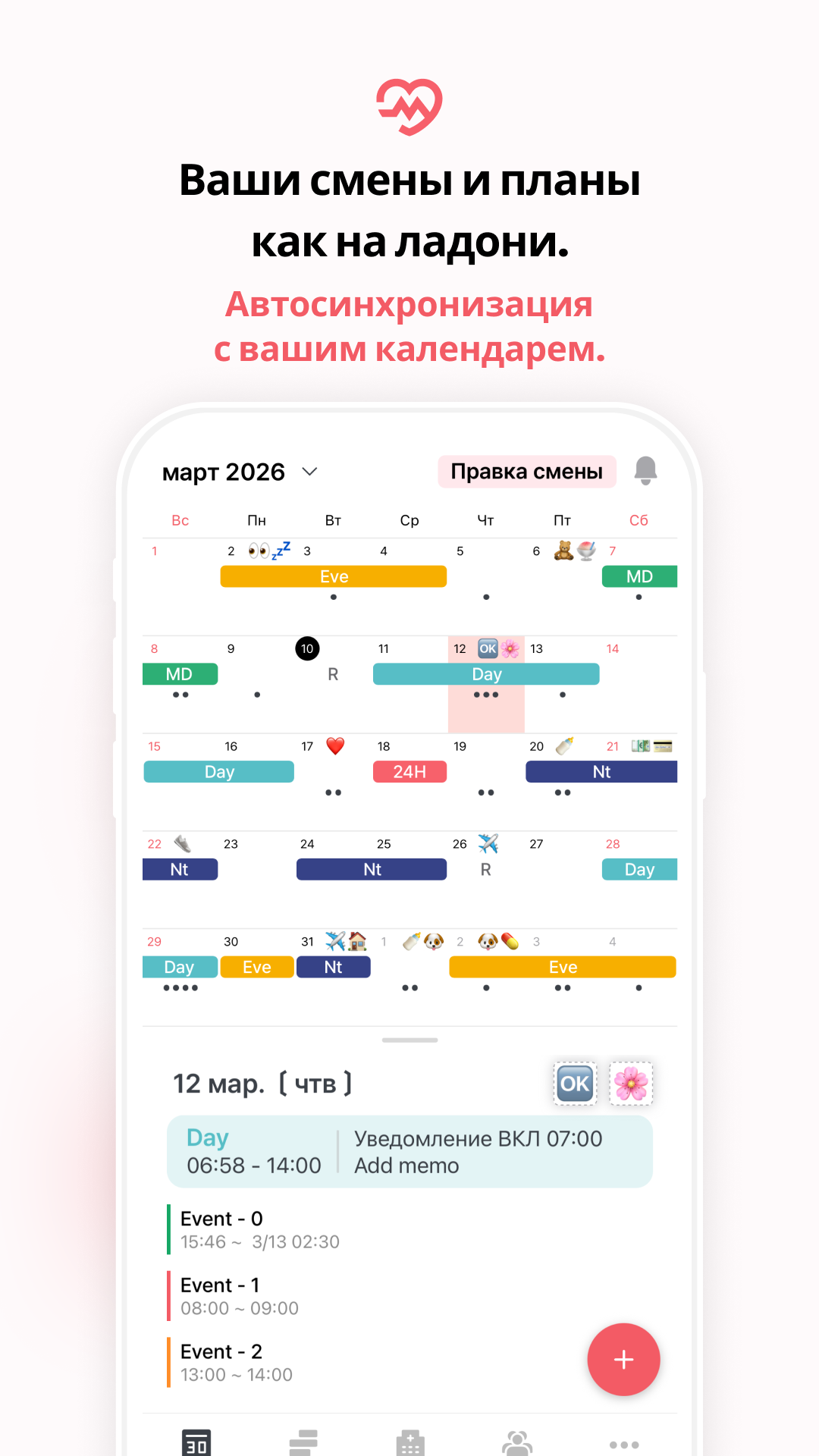 Просматривайте смены и личные события на одном